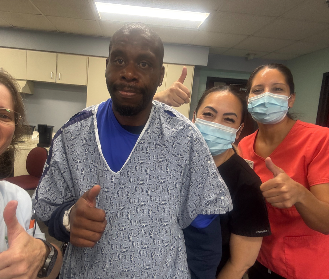 Christopher Jackson came to Harmon Hospital after a life-altering auto vs. pedestrian accident that left him with multiple injuries—including rib fractures, pelvic and hip fractures, and ruptured tendons requiring surgical repair. His recovery journey began with significant limitations: he was unable to bear weight on his legs, needed assistance to reposition in bed, and relied